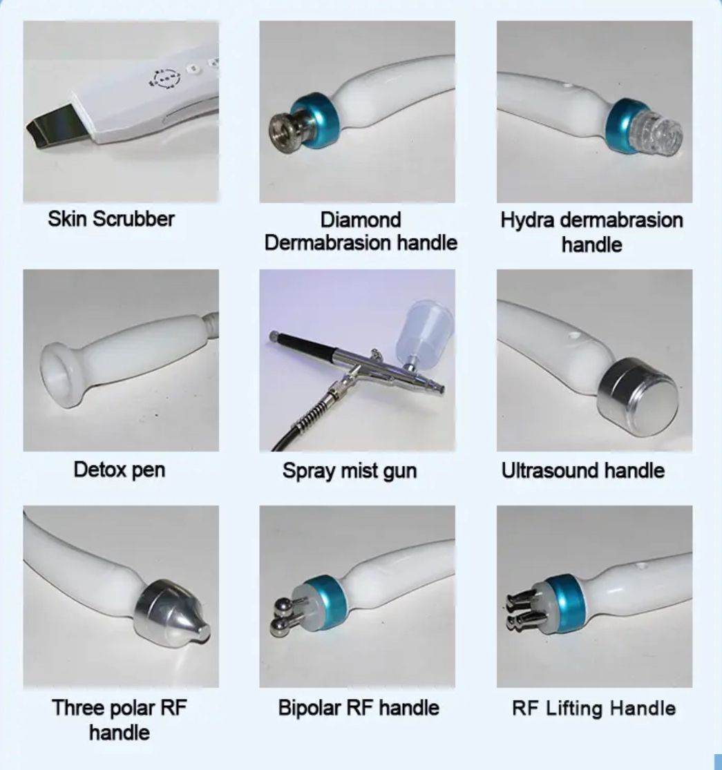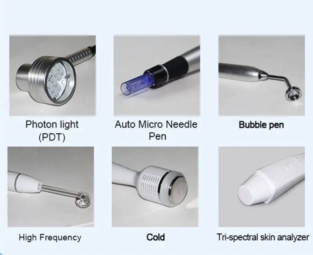 Presentamos la nueva máquina facial de microdermoabrasión con oxígeno Hydra, el equipo de belleza perfecto para todas sus necesidades faciales. Esta revolucionaria máquina es una combinación de Hydra, alta frecuencia, dermapen,bublee Pen, martillo de hielo, pulverización de oxígeno, depurador de piel, terapia de luz LED, vacumterapia, ultrasonido facial y ocular,espátula ultrasónica,radiofrecuencia bipolar,punta de diamante,radiofrecuencia tripolar y cámara de diagnóstico facial!