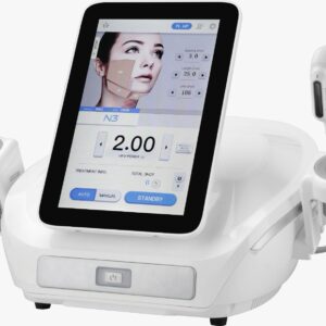 Esta máquina Hydra funciona para limpiar, exfoliar e hidratar la piel en profundidad. La tecnología Hydra ayuda a eliminar la suciedad y las impurezas de la piel, mientras que la tecnología de ultrasonido ocular ayuda a reducir las arrugas y las líneas finas. Las tecnologías de radiofrecuencia y de alta frecuencia ayudan a estimular la producción de colágeno y reducir la apariencia de los poros. El dermapen introduce principios activos en el interior de la piel y el martillo de hielo ayudan a masajear y refrescar la piel, mientras que el spray de oxígeno y el depurador de la piel ayudan a eliminar las células muertas de la piel y aumentan la circulación. La terapia de luz LED ayuda a reducir la inflamación y mejorar el tono general de la piel. Finalmente, las tecnologías Micro, Vacuum y Face Eye Ultrasound ayudan a levantar y reafirmar la piel.